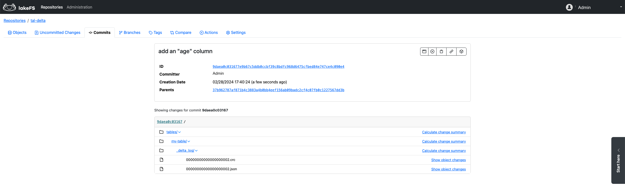 lakeFS is a data versioning tool, functioning at the object level. This implies that, by default, lakeFS remains agnostic to whether the objects within a Delta table location represent a table, table metadata, or data. As per the Delta Lake protocol, any modification to a table—whether it involves adding data or altering table metadata—results in the creation of a new object in the table's transaction log. Typically, residing under the _delta_log path, relative to the root of the table's directory. This new object has an incremented version compared to its predecessor.